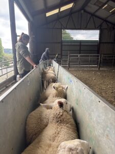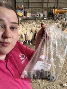 Every week is different with the Farming Connect programme! On Monday, I’d be out on a farm collecting FEC samples in order to send them for testing. Tuesday would be an office day and completing some tasks for different people from the programme – for example, contacting farmers to invite them to various events across Wales. On Wednesdays, I could be back out on a farm weighing lambs and taking FEC samples again, and dosing and dividing the lambs into different groups depending on their weight so that they’re ready to go to the herbal ley. After weighing the lambs, I’d go to the herbal ley itself and do some cutting and weighing. On Thursday, another day on a farm, and on this day, I’d learn something completely new – like backfat scanning lambs and inputting the data into spreadsheets. Then to finish the week, a lovely day off on Friday.